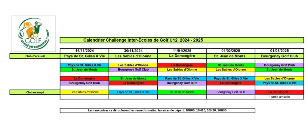 Rendez vous le 29 Novembre au Golf de La Domangère pour le 4ème Tour des inter clubs U12.